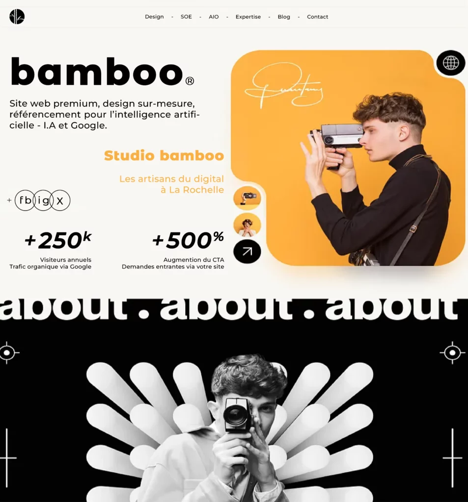 Bienvenue chez Studio Bamboo, votre agence de création de sites web et d’optimisation SEO basée à La Rochelle. Nous offrons des solutions digitales sur mesure dans toute la France. Notre mission est claire : transformer votre présence en ligne en un puissant levier de croissance pour votre entreprise. Nous ne nous contentons pas de concevoir des sites esthétiques ; nous mettons en place une stratégie digitale complète conçue pour vous placer devant vos clients idéaux. Que vous soyez une TPE, un artisan, ou un professionnel du bâtiment, du paysage, de la restauration ou de l’événementiel, nous vous apportons une solution web sur mesure, visible et rentable. Notre approche est éprouvée pour booster votre référencement naturel et assurer un retour sur investissement maximal.